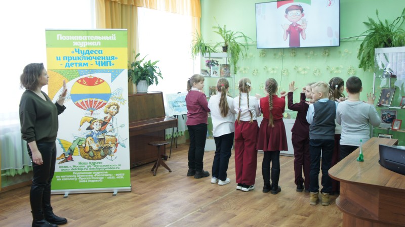 Главные герои журнала «Чудеса и Приключения – детям» – мальчик-загадка Чип, профессор Василий Чипов и мудрая такса Чапа – приготовили для ребят увлекательные игры и задания. Третьеклассники с большим интересом пробовали себя в роли редакторов, корректируя слова; рассказывали о домашних животных и узнавали много нового об экзотических питомцах; активно играли с Чипом в «замиралки» (кстати, взрослые тоже подключились – и не такая это простая игра, как может показаться!). От души повеселились, придумывая для текста смешные прилагательные, а потом слушая результат. А как приятно победить и получить приз! Четырём счастливчикам достался сертификат на трёхмесячную подписку на журнал «Чудеса и Приключения – детям», остальные тоже не остались без подарков. Дети тут же схватили журналы и стали с увлечением рассматривать.