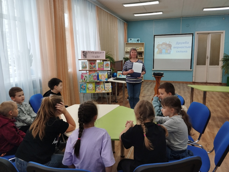 День дружбы - создан для того, чтобы мы напомнили своим друзьям о том, как они дороги и важны. Друзья нам нужны в любом возрасте и при любом состоянии души! А вот дружить мы учимся с детства. Для детей пришкольных лагерей прошёл час доброго общения «Дружба верностью сильна». В ходе мероприятия дети отправились в путешествие по волшебной стране доброты. По пути следования останавливались на необычных, интересных станциях и выполняли различные задания. Юные читатели вспоминали пословицы и поговорки о дружбе, отгадывали загадки и героев литературных произведений, которые были настоящими друзьями, определяли качества настоящего друга. Ребята усвоили, что с друзьями хорошо и в радости, и в грусти. Друзья должны быть у каждого!