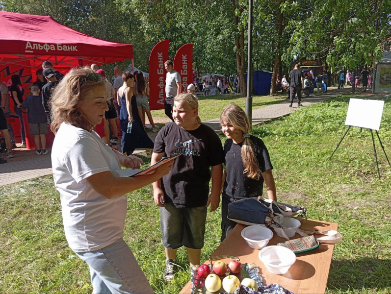 А вот вопросы «интеллектуальной» яблони были очень разнообразны: участникам (здесь пришлось потрудиться взрослым) пришлось вспомнить исторические факты, связанные с яблоками, по ботанической классификации найти сородича яблоку, правильно сосчитать Спасы и даже узнать, где протекает река Яблоня.