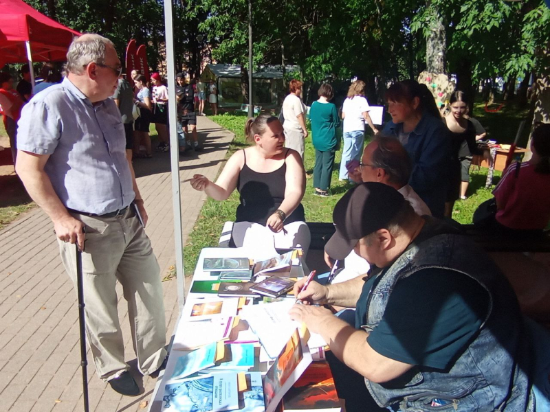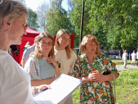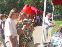 «Яблочная» тематика библиотечной площадки на праздновании Дня города была выбрана не случайно: ведь во второй половине XIX века на территории спорткомплекса «Старт», на возвышенном берегу Межи и близлежащих землях располагалась усадьба Нелидовых. Перед небольшим домом с мезонином был разбит большой фруктовый сад.