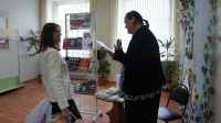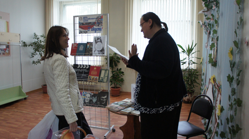 Библиотекари – люди весёлые, и всегда приглашают своих читателей повеселиться вместе с ними, а тут как раз такой повод! И устроили мы небольшую акцию-викторину, где с трёх попыток по цитатам нужно было угадать, из какого они фильма. И если вы думаете, что смотрели сто раз «Бриллиантовую руку», «12 стульев» или, скажем, «Любовь и голуби» и потому всё легко отгадаете – не тут-то было. Мы же не только весёлые, но и хитрые, и первой ставили самую сложную цитату! Однако и гости наши тоже оказались не лыком шиты, почти все загаданные картины угадали! Самое смешное, что больше всего затруднений почему-то вызвал фильм «Иван Васильевич меняет профессию», и только после фразы «Танцуют все!» народ радостно вскрикивал: «Ааааа! Это же про царя!»