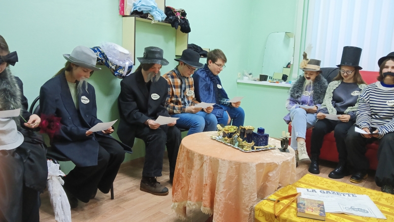 Итак, роли на бумажных табличках перемешиваются — и…вытягиваются по очереди. Кому-то следующие 30 минут быть Огюстом Дюпеном, кому-то — Полиной Дюбур, прачкой, кому-то Рассказчиком, а кому-то табачным торговцем Пьером Моро. Сцены разыгрывались только голосами, но участники вечера постепенно так сживались с персонажами, что проявили настоящее актёрское мастерство. Немало способствовал этому и тщательно подобранный реквизит: шляпы, накидки, усы и другие аксессуары добавили изюминку каждому образу.