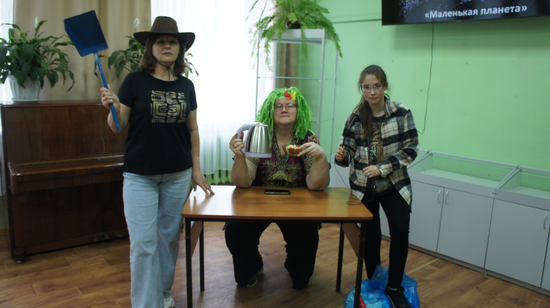 Уф, ну и денёк сегодня в библиотеке! Читальный зал внезапно оказался отсеком космического корабля, и мы вместе с ребятами из отрядов пришкольного лагеря школы №5 отправились в космическое путешествие на родину Маленького Принца. Наша команда имела чрезвычайно важную миссию – спасти планету от Баобабов. Эти сорняки так разрослись, что угрожали всему живому!