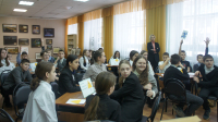 Преподаватель детской школы искусств Кулакова Татьяна Анатольевна рассказала детям, как математика может быть связана с музыкой, и шестиклассники с её помощью успешно изобразили ритмический оркестр. А главный библиограф Анна Валентиновна Штубова поведала о том, как могут быть связаны математические уравнения с живописью и историей.