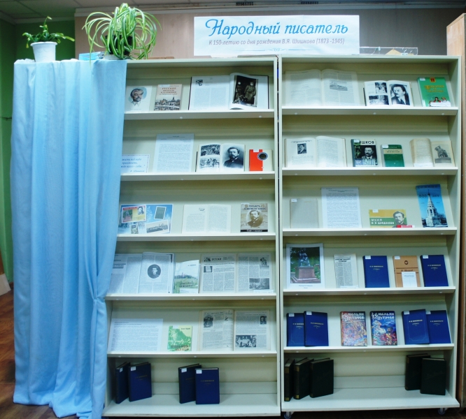 К юбилею В.Я. Шишкова в центральной библиотеке открылась выставка, где представлены книги и журналы о его интересной и богатой событиями жизни, а также сборники его очерков, статей, рассказов, повестей и романов.