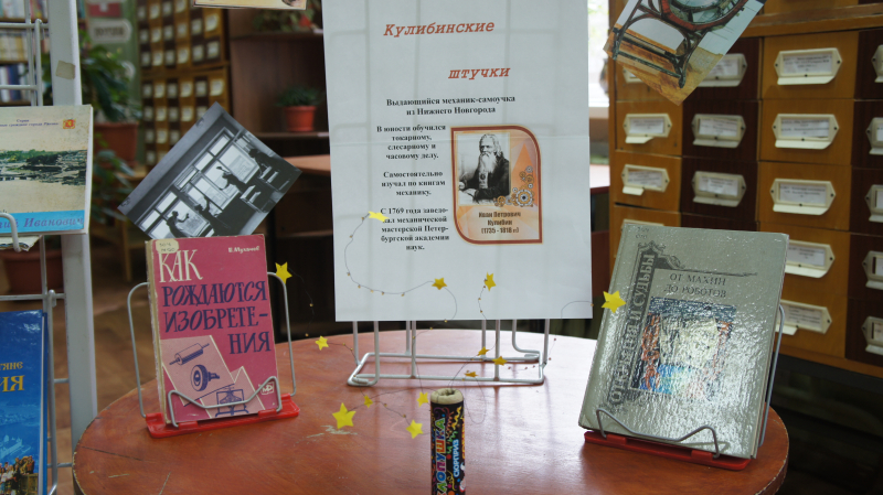 К 290-летию со дня рождения Ивана Петровича мы в библиотеке подготовили небольшую книжную подборку. Взяв книгу, вы можете узнать не только об изобретениях Кулибина, но и о его весьма увлекательной биографии. А ещё поучаствовать в викторине «Кулибинские штучки», послушать рассказ библиотекаря о самых интересных фактах из жизни гениального русского изобретателя.