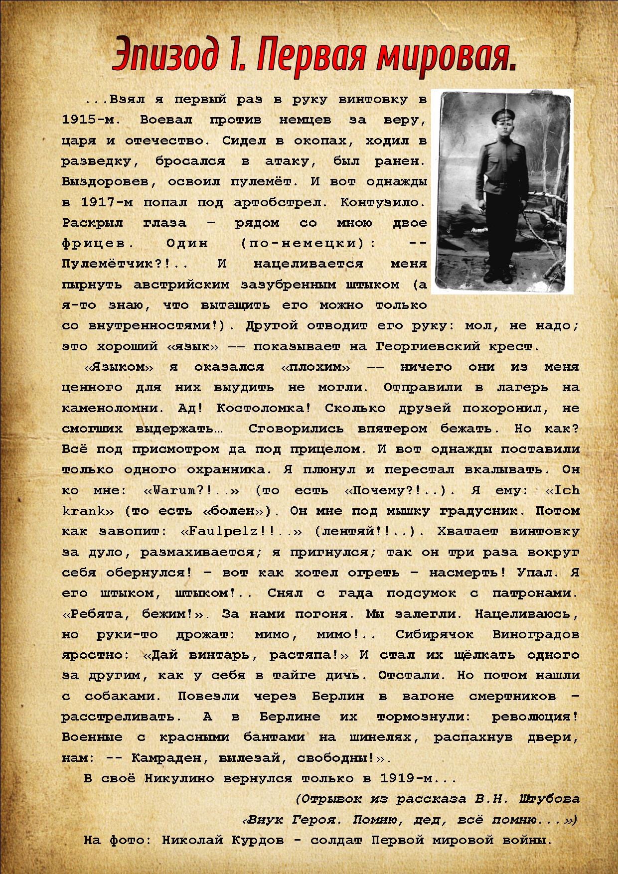 Зарисовки из жизни Героя Советского Союза Николая Тимофеевича Курдова