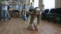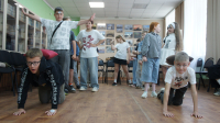 А вот затем декорации сменились – и вновь пришедший отряд гимназистов, а также детишки из коррекционной школы с удовольствием погрузились в мир джунглей и отправились в полное опасностей путешествие! Команды «Тигры» и «Обезьяны» храбро шли через тропический лес, полный диких зверей, длиннющих змей и самых разных звуков, которые нужно было опознать. Цепочкой проходили они через деревья; прыгали, как самые заправские кенгуру; ползли, словно шустрые черепахи (да-да, эти животные умеют бегать очень быстро!). Капитаны команд должны были быстро напоить свежей водой своих участников, для чего во время «Водяного перемирия» нужно было как можно быстрее наполнить сосуды, набирая воду ложкой из «озера».