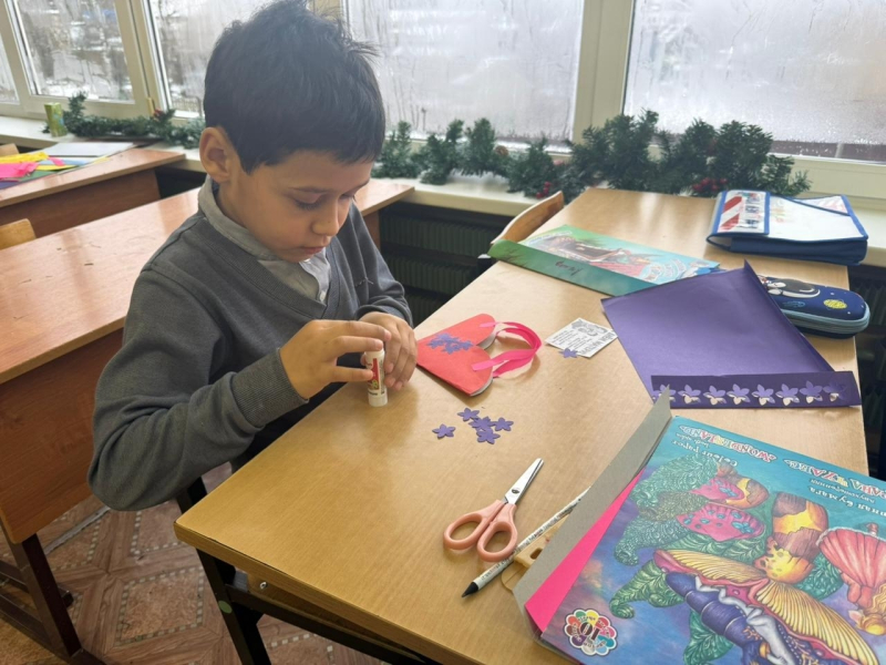 Дети с удовольствием мастерили открытку из картона и бумаги. Во время творческой работы общались и рассказывали про своих мам: как их зовут, какая у них профессия, какие они любимые и добрые.