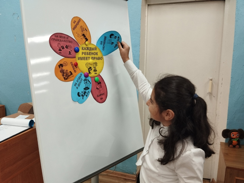Во время мероприятия школьники познакомились с Конвенцией о правах. Поговорили о том, что такое права, зачем они нужны и как они помогают защитить каждого ребенка. Дети узнали о своих правах на жизнь, имя, семью, образование, отдых и многое другое.