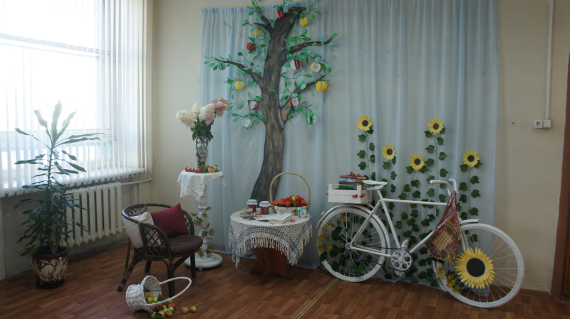 То там, то здесь уже можно углядеть первые деликатные прикосновения Осени. Кончиками пальцев она огладила яблоки, словно чётки перебрала гроздья рябины, вдохнула ещё летний, пахнущий солнцем воздух, и выдохнула осенний – с ароматами спелых яблок, тыквенного пирога и прелой листвы. Прошлась по полям, задевая золотым платьем колосья пшеницы... Заглянула она и в нашу библиотеку: махнула длинными светлыми ресницами – вот и нет её, словно мираж. Но нет, не мираж, ведь в одно мгновение появилась в фойе уютная осенняя фотозона...
