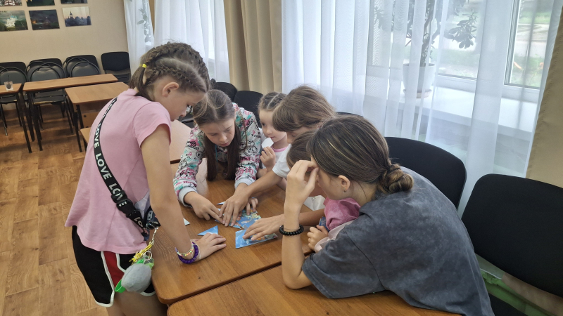 После просмотра познавательных фактов о жизни морских млекопитающих и знакомства с Красной книгой России мальчишки и девчонки попытались найти схожесть и различия в жизни китов и дельфинов, отгадали загадки и вспомнили сказки со встречающимися морскими жителями, сложили непростой пазл с обитателями подводного мира. Две команды наперегонки спасали своих кита и дельфина, которые оказались без воды. А по громкому сигналу SOS, обнаружив песчаное побережье засоренным остатками жизнедеятельности и отдыха людей, сообща убрали его от мусора.