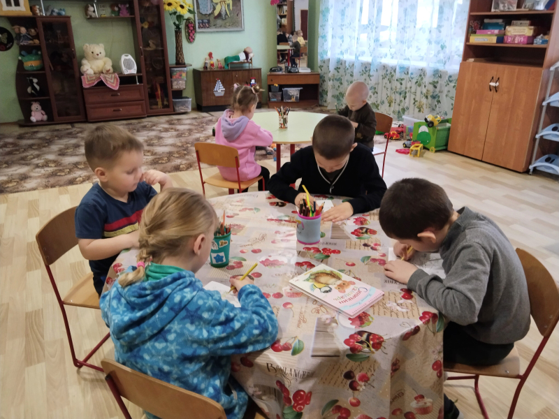 - После чтения малыши проявили творческие способности, раскрашивая ярких синичек.