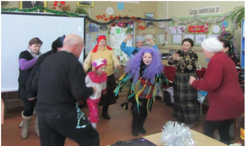 И праздник удался на славу! Весёлый хоровод вокруг ёлочки (пусть небольшой, но очень нарядной); задорные частушки в исполнении Деда Мороза, Снегурочки и гостей; зажигательные танцы с колядовщиками – Кикиморой, Лешим и Клоунессой; уморительные конкурсы, организованные Бабой Ягой - председателем Совета ветеранов Земцовского сельского поселения Толоковой Верой Николаевной; разговоры по душам за чашкой чая…