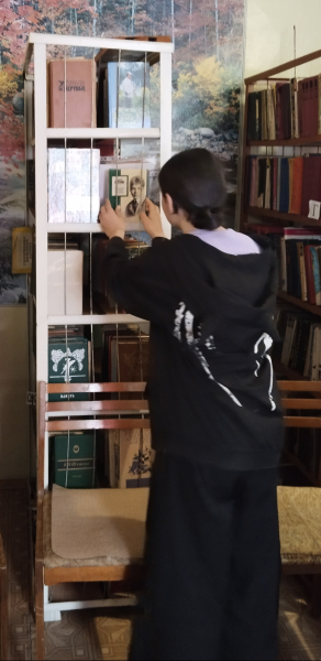 Под руководством сотрудника библиотеки участники встречи попробовали самостоятельно найти нужные книги: «Горе от ума» Грибоедова, стихи Сергея Есенина, «Собачье сердце» Булгакова и другие книги.