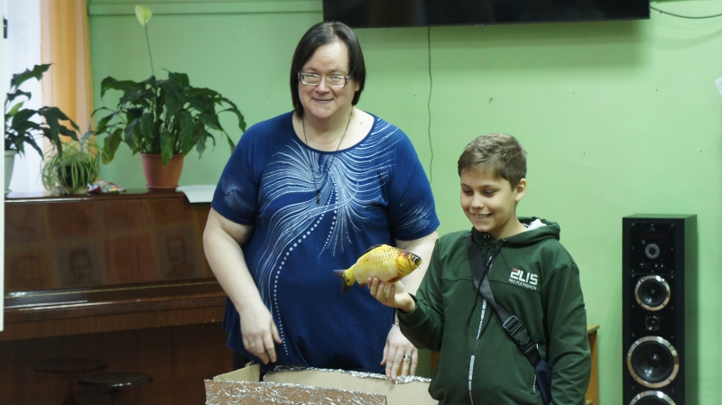 Командная игра «Сказка ложь, да в ней намек» проходила дружно и шумно! Помимо привычных конкурсов, рассчитанных на знание любимых русских и зарубежных сказок, ребятам пришлось разгадывать «бабкины загадки», рисовать мультяшных персонажей с завязанными глазами, вспоминать сказочные формулы. Но самый большой восторг вызвал наш чудесный серебряный сундучок, в котором скрывались самые разные сказочные предметы: от Золотой рыбки до Петуха из «Бременских музыкантов» (которого почему-то за Курочку-Рябу принимали). Можно было самим доставать игрушки и определять вместе с командой, из каких же сказок они прибыли в гости.