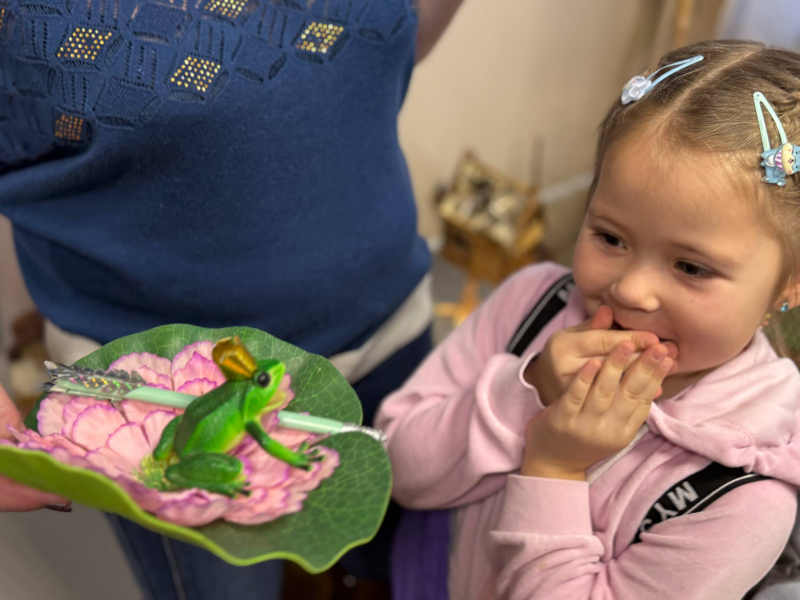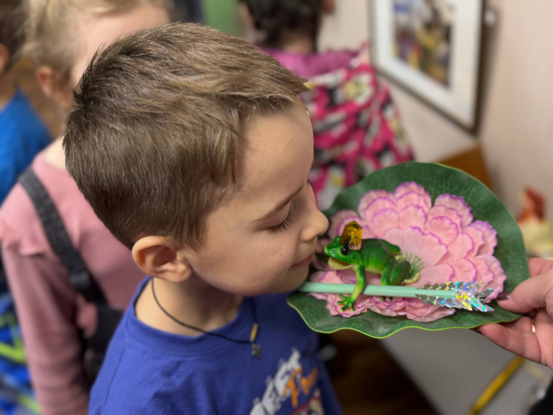 На выставке посетителей ожидает много интересных моментов! Их встречает не просто библиотекарь, а сказочная волшебница, которая поможет разрушить волшебство Бабы Яги, поведает тайну Кащея Бессмертного и даже поможет оживить сказку. Кроме картин, здесь можно увидеть немало сказочных предметов: ларец с драгоценностями, меч-кладенец, золотое веретено, можно покатать золотое яичко по серебряному блюдечку, заглянуть в избушку на курьих ножках и даже поцеловать Царевну-лягушку.