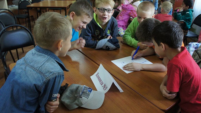 Юные знатоки делились на команды, каждая из которых придумывала себе по-настоящему летнее название. Тут дети дали волю фантазии: «Дружные совята», «Летний персик», «Вкусный клевер»…