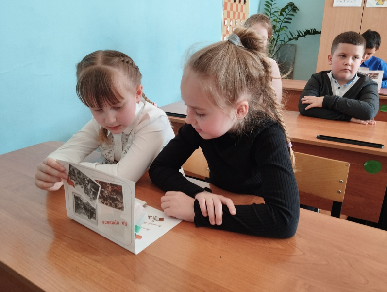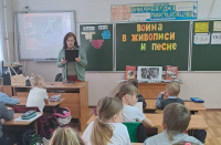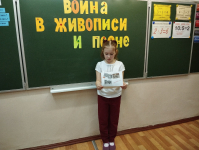 А ещё о войне нам может рассказать изобразительное искусство. На фронте и в тылу художники создавали летопись войны, уникальную галерею сильных народных характеров, а яркий и лаконичный язык плаката разоблачал бесчеловечную жестокость фашизма. С помощью презентации ребята посмотрели картины известных художников, которые способны передать боль и тяжесть военных дней, страдания народа. И нет ничего прекраснее, чем вникнуть в историю, прочувствовать ее сердцем.