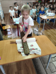Ребята посмотрели содержательную презентацию «История утюга». На слайдах были представлены железные и чугунные утюги (вес до 12 кг.), утюг — «паровоз», духовой утюг, жидкотопливные утюги, которые заправлялись газом, спиртом, керосином. Приз детских симпатий завоевал хрустальный утюг, позолоченный, и утюг, ручка которого инкрустирована камнями драгоценными — это настоящие произведения искусств. Такие утюги стоили очень дорого и были только в царских палатах. Детям было интересно попробовать выкатать белье по старинке с помощью деревянного рубеля.