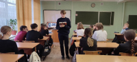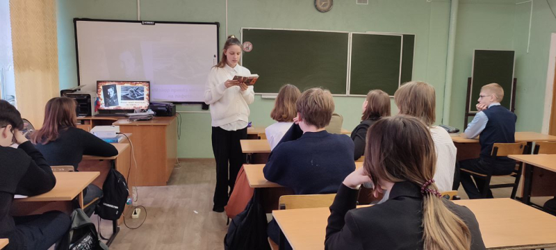 Накануне юбилейной даты сотрудники Центральной библиотеки провели литературные уроки в школах города, позволившие учащимся погрузиться в эпоху и творчество одного из главных летописцев Великой Отечественной войны. Библиотекари подготовили для ребят увлекательный рассказ о непростой судьбе и ярком литературном пути Симонова. Подростки узнали не только основные вехи его биографии, но и множество интересных фактов: о его настоящем имени, о том, какую роль в его жизни сыграла мать, о фронтовых дорогах и истории создания самых знаменитых произведений.
